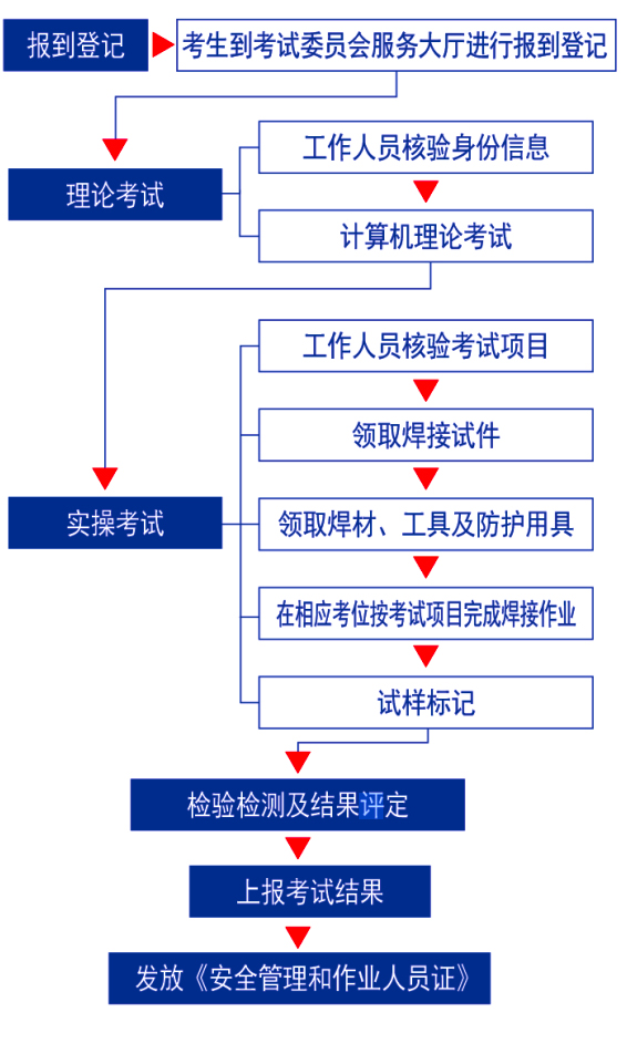 焊工考試委員會設有:實操考試基地、多功能理論考試教室、焊材庫、試樣庫監(jiān)控室、無損檢測室、理化實驗室等,建筑面積達700余平方米。